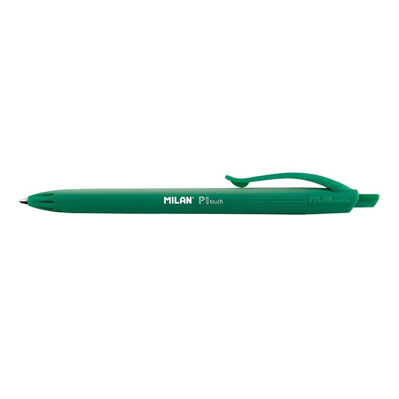 Milan P1 Touch Boligrafo de Bola Retractil – Punta Redonda 1mm – Tinta de Aceite – Escritura Suave – 1.200m de Escritura – Color Verde